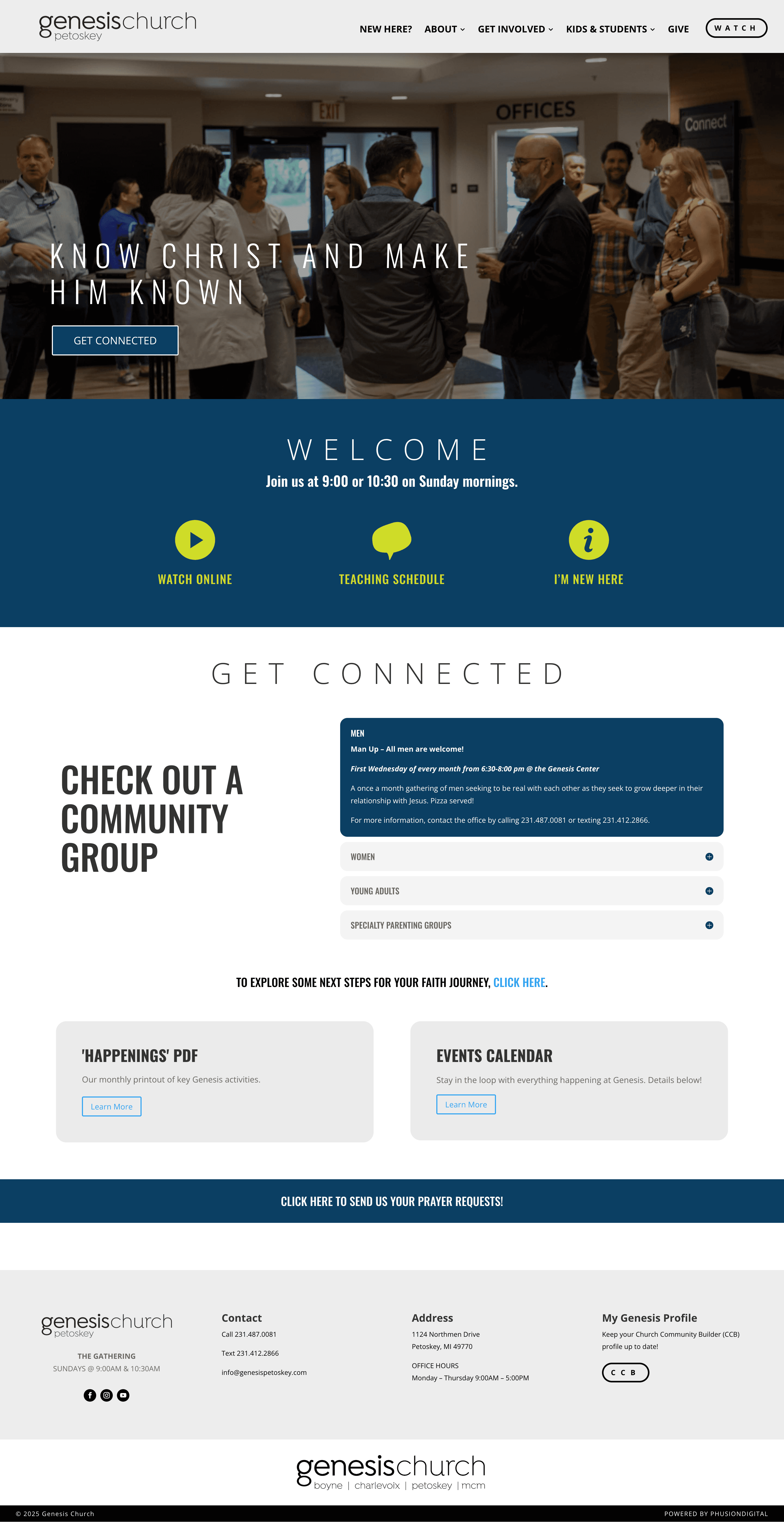 Genesis Church Petoskey is a non-denominational church serving communities across northern Michigan, with a growing congregation of around seven hundred attendees each week. With this growth comes a deep desire for connection. People want to stay informed, get involved, and build meaningful relationships within the church.